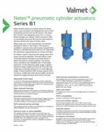Los actuadores de pistón de doble efecto y retorno por resorte de la serie B1 de Neles están diseñados para su uso tanto en servicios de control modulante como de encendido y apagado. Las series B1C y B1J están diseñadas para cumplir con la norma ISO 5211/1 cuando se utilizan los acoples Neles. Estos actuadores ofrecen una vida útil extremadamente larga y son adecuados para operar casi cualquier tipo de válvula rotativa. Esta serie está disponible en varios tamaños con salidas de par de 40 Nm a 100000 Nm para una presión de suministro máxima de 10 bar (145 psi).